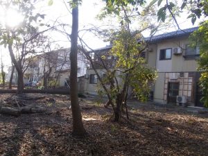 あまりにも天気がいいので、敷地内の写真を撮りました。何時もは表しか撮りませんが、後ろの松林と松林から見た店と自宅を写してみました。いつも、カラスやムジナなどは、こういう角度からこちらを観ているのだろう。 表から見る風景と裏から見る風景は、やはり全然違います。