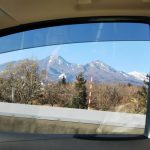 幸い天気が良くて、真っ青な空、雪がうっすらとかかった山々、12月にしては、眩しい日差しの中、長谷川君の運転で出発しました。